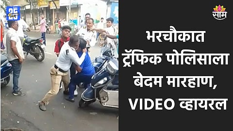 मुंबईनजीकच्या नालासोपारामध्ये ट्रॅफिक पोलिसांना भरचौकात बेदम मारहाण करण्यात आल्याची घटना समोर आली आहे. नालोसोपाऱ्यातील प्रगती नगरमध्ये ही धक्कादायक घटना घडली. या घटनेचा व्हिडीओ समोर आला असून तो सोशल मीडियावर व्हायरल होत आहे. बाप-लेकाने ट्रॅफिक पोलिसांना रस्त्यावर आडवं करून लाथ्याबुक्यांनी बेदम मारहाण केली. या घटनेमुळे नालासोपाऱ्यात खळबळ उडाली आहे.
