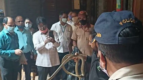 सकाळच्या सुमारास हा साप (bombay high court) येथे आढळला. त्यावेळी न्यायाधीश बाेरकर हे त्यांच्या दालनात नव्हते. सापाची (snake) माहिती तात्काळ पोलिस कर्मचार्यांना देण्यात आली. पाेलिसांनी सर्पमित्र संघटनेशी संपर्क साधात सर्प मित्रांना बाेलावून घेतले.