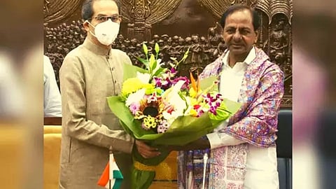 मुंबई : तेलंगणाचे मुख्यमंत्री के. चंद्रशेखर राव (Telagana CM K Chandrashekhar Rao) हे महाराष्ट्राचे मुख्यमंत्री उद्धव ठाकरेंना (Maharashtra CM Uddhav Thackeray) भेटण्याकरिता आज मुंबईत दाखल झाले आहेत. दोघांमध्येही चर्चा रंगली आहे. केंद्रातील भाजप सरकार विरोधात तिसरी आघाडी निर्माण करण्याचे संकेत नुकतेच केसीआर यांनी दिले होते. त्याच घडामोडींना वेग आला असून आज केसीआर आणि उद्धव ठाकरेंमध्ये दीड तासापासून बैठक सुरु होती.