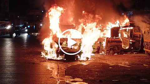 ही आग वाढल्याने कारजवळच उभ्या असलेल्या दोन रिक्षांनीही पेट घेतला. एकाच वेळी कार आणि दोन रिक्षांना आग लागल्याने परिसरात काळ्या धुराचे मोठे लोट पसरले. यामुळे रस्त्यावरील वाहनचालकांचा एकच गोंधळ उडाला.