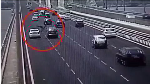 मुंबई: मुंबईतील वांद्रे-वरळी सी लिंक (Bandra-Worli Sea Link) येथे मे महिन्यात झालेल्या एका अपघाताचा सीसीटीव्ही व्हिडिओ (Viral Video) समोर आला आहे. या अपघातात एका टॅक्सीच्या धडकेत (Car Accident) दोन जण हवेत काही अंतरावर फेकले गेल्याचे पाहून कुणाच्याही अंगावर काटा येईल. ही घटना ३० मे ची असून एका जखमी गरूडाला (Eagle) वाचवण्याच्या नादात सी लिंकवर हा प्रकार घडला. वांद्रे-वरळी सी लिंकवर एक गरुड जखमी अवस्थेत पडले होते. त्या गरुडाला वाचवण्याच्या प्रयत्नात दोघांना आपले प्राण गमवावे लागले आहेत. (Two Death In Unfortunate accident while trying to rescue an injured eagle On Bandra Worli Sea Link Mumbai Video Viral)