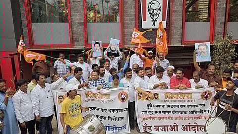 पुण्यातील डेक्कन (deccan pune) परिसरातील आर डेक्कन येथील इमारतीसमाेर आज (बुधवार) सांयकाळच्या सुमारास शिवसेना उद्धव बाळासाहेब ठाकरे पक्ष आक्रमक झाल्याचे पाहायला मिळाले. ठाकरे गटाच्या कार्यकर्त्यांनी भाजप नेते निलेश राणेंच्या (bjp leader nilesh rane) विरोधात "बँड बाजा" आंदोलन छेडले आहे. या आंदाेलनाची खूमासदार चर्चा परिसरात सुरु आहे. (Maharashtra News)