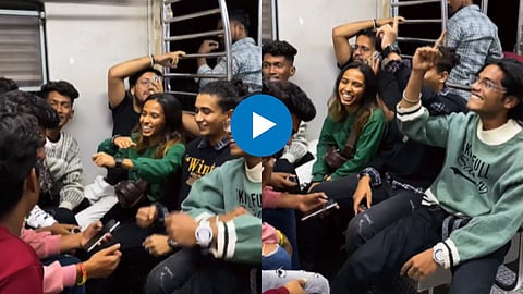 मुंबई : मुंबईची लोकल ट्रेन म्हटलं तर डोळ्यासमोर प्रचंड गर्दीच उभी राहते. लोकल ट्रेनच्या डब्ब्यातून हजारो नोकरी करणारे प्रवासी ये-जा करत असतात. बहुतांश प्रवासी लोकल ट्रेनच्या गर्दीत घामाघूम होत उभं राहून प्रवास करत असतात. तर ट्रेनमध्ये सीटवर बसलेले प्रवासी मोबाईलमध्येच गुंतलेले असतात. मात्र, या लोकल ट्रेनमध्ये आनंदात गाणं गात प्रवास करणारे प्रवासी क्वचित आढळून येतात. असाच लोकल ट्रेनमध्ये गाणं गात प्रवास करणाऱ्या तरुणांचा व्हिडिओ समोर आला आहे. ट्रेनमध्ये तरुणांनी गायलेलं गाणं सोशल मीडियावर तुफान व्हायरल झालं आहे.