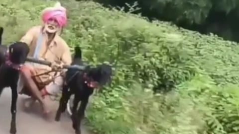 या बाबांची ही गाडी आणि बाबा दोघेही सोशल मीडियावर जोरदार व्हायरल होतं आहेत. व्हिडिओमध्ये तुम्ही पाहू शकता की, या बाबांनी दोन बकऱ्यांना समोर बांधलं आहे आणि मागे दोन चाकं लावले आहेत. या चकांमध्ये त्यांनी बसण्यासाठी जागा केली आहे. बैल किंवा घोडागाडी नसल्याने या बाबांनी प्रवासासाठी शोधलेला हा जुगाड पाहून सगळेच चकित झालेत.