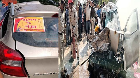 छत्तीसगडमधील (Chhattisgarh) जांजगीर-चंपा जिल्ह्यात अपघाताची दुर्देवी घटना घडली. बलौदा येथील शुभम सोनी आणि शिवरीनारायण येथील नेहा यांचा शनिवारी रात्री विवाह सोहळा झाला. रविवारी सकाळी नवरा नवरी कारमधू घरी परतत होते. कारमध्ये नवरा-नवरीसोबतच कुटुंबातील आणखी तीन लोक होते.