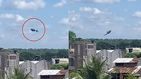 Colombia Helicopter Crash : कोलंबियातून एक मोठी बातमी समोर आली आहे. कोलंबियात लष्करी जवानांचे हेलिकॉफ्टर कोसळले आहे. या भीषण अपघातात चार जवानांचा मृत्यू झाल्याची माहिती आहे. हेलिकॉप्टर कोसळतानाची थरारक घटना एका व्यक्तीने आपल्या मोबाईल कॅमेऱ्यात कैद झाली असून थरकाप उडवणाऱ्या घटनेचा व्हिडीओ समोर आला आहे. (Latest Marathi News)