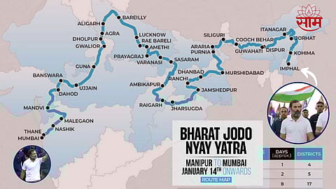 भारत जोडो यात्रेनंतर राहुल गांधींच्या नेतृत्वात आता इंफाळ मणिपूर ते मुंबई दरम्यान 6713 किमी यात्रेचं आयोजन करण्यात आलं आहे. १४ जानेवारीला सुरू होणाऱ्या या यात्रेला भारत जोडो न्याय यात्रा असं नाव देण्यात आलं आहे. याआधी भारत न्याय यात्रा असं नाव देण्यात आलं होतं. मणिपूर (इंफाळ) मधून यात्रेला सुरुवात होणार असून यात्रेची सांगता मुंबईत होणार आहे. महाराष्ट्रात 5 दिवस यात्रा असून नंदुरबार, धुळे, नाशिक, पालघर, ठाणे, मुंबई अशा 6 जिल्ह्यातून यात्रा जाणार आहे. राहुल गांधींची ही यात्रा 66 दिवस यात्रा चालणार आहे. तर देशातील 110 जिल्ह्यातून यात्रेचा प्रवास असेल.