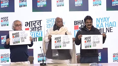 काँग्रेस नेते राहुल गांधी यांची भारत जोडो न्याय यात्रा 14 जानेवारीपासून मणिपूरमधून सुरू होत आहे. याबद्दल बोलताना पक्षाचे राष्ट्रीय अध्यक्ष मल्लिकार्जुन खरगे यांनी म्हटले आहे की, या यात्रेच्या माध्यमातून देशाच्या मूलभूत सामाजिक, राजकीय आणि आर्थिक प्रश्नांवर लक्ष केंद्रित केले जाईल. यावेळी त्यांनी भारत जोडो न्याय यात्रेचा लोगो आणि टॅगलाइन “न्याय का हक मिलने तक” लॉन्च केली आहे.