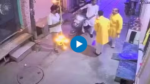दिवाळीच्या दिवशीचा सीसीटीव्ही फुटेज समोर आलं आहे. पिवळ्या कुर्त्यात ४० वर्षीय आकाश आणि १६ वर्षीय पुतण्या ऋषभ फटाके फोडत होते. तर त्यांचा १० वर्षीय कृष हा दरवाज्यात उभा होता. यावेळी दोन लोक स्कुटीवर आले. दुसरा व्यक्ती स्कुटीवर खाली उतरला. त्यानंतर त्याने बंदूक काढून थेट आकाशवर गोळ्या झाडल्या.