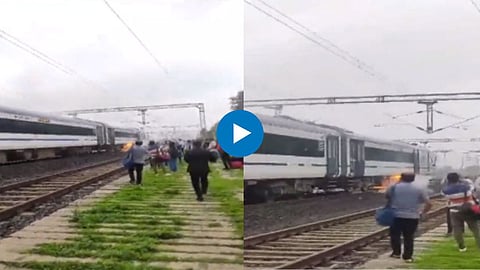 Vande Bharat Train Fire Video: भोपाळहून दिल्लीला निघालेल्या वंदे भारत ट्रेनच्या एका डब्याला सोमवारी पहाटेच्या सुमारास अचानक आग लागली. बीना शहराजवळ पहाटे साडेपाच वाजेच्या सुमारास ही घटना घडली. या आग लागल्याचं कळताच लोको पायलटने तातडीने ट्रेन थांबवली. ट्रेनमधून प्रवाशांना सुखरूप बाहेर काढण्यात आलं.