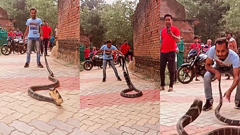 अशात कोब्राला तो माणूस त्रास देत असल्याने तो देखील भडकतो आणि थेट त्याच्यावर हल्ला करण्याचा प्रयत्न करतो. किंग कोब्राची शेपटी पकडताच तो उलट फिरतो आणि त्या व्यक्तीवर फणा काढतो. हे पाहून सगळेच घाबरतात. मात्र हा व्यक्ती किंग कोब्राच्या डोळ्यात बघतो आणि कोब्रा शांत होतो. त्यावर हा व्यक्ती पुन्हा एकदा खोडसाळपणा करतो आणि सापाची शेपटी पकडून त्याच्या पाठीला हात लावतो. पुन्हा तसचं होतं. किंग कोब्रा पुन्हा फणा काढतो. तिसऱ्यांदा मात्र किंग कोब्रा चांगलाच खवळतो. त्या माणसाने शेपटीला हात लावताच तो उलटा फणा काढतो आणि त्याच्या दिशेने सरपटू लागतो.
