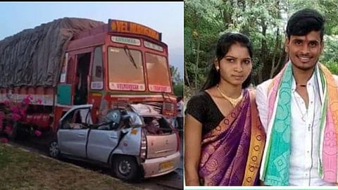 सोलापूरच्या लवंगी येथून बंगळुरूकडे आपल्या कारमधून निघालेले दोघे पती-पत्नी आणि त्यांची दोन मुले असे चार जणांचा दुर्दैवी मृत्यू झाला आहे. तर कर्नाटकच्या इंडी तालुक्यातील नंद्राळ गावच्या त्यांच्या दोन नातेवाईकांचाही मृत्यू झाला आहे.