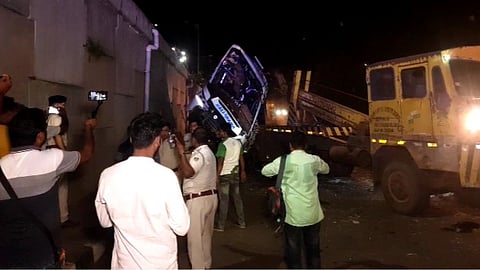 या अपघातात एका महिलेसह ५ प्रवाशांचा जागीच मृत्यू झाला. तर ४० हून अधिक प्रवासी जखमी झाले. अपघाताची माहिती मिळताच स्थानिकांसह पोलिसांनी तातडीने घटनास्थळी धाव घेत बचावकार्य केले. जखमींना उपचारासाठी रुग्णालयात दाखल करण्यात आलं आहे.