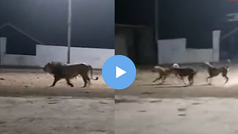 दरम्यान, भटके कुत्रे सिंहाच्या मागे लागले होते. चार कुत्रे सिंहाच्या मागे लागल्याचं व्हिडीओत दिसत आहे. त्यानंतर कुत्र्यांपासून बचाव करण्यासाठी सिंह अक्षरश: पळून गेला. कुत्रे त्याच्यावर सतत भुंकताना दिसले.