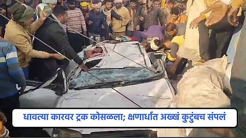या भीषण अपघातात एकाच कुटुंबातील चौघांचा मृत्यू झाला. काळजाचा ठोका चुकवणारा हा अपघात मध्य प्रदेशातील गुना जिल्ह्यात मंगळवारी पहाटेच्या सुमारास झाला. मृतांमध्ये दोन पुरुष आणि तीन महिलांचा समावेश आहे. ('साम टीव्ही'चं व्हॉट्सअँप चॅनल जॉईन करण्यासाठी येथे क्लिक करा)
