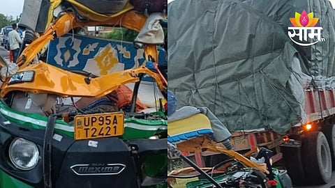 या रिक्षात तब्बल १२ जण बसले. झाशी खजुराहो महामार्ग NH 39 वर रिक्षा आली असता, रिक्षाचालकाचे अचानक गाडीवरील नियंत्रण सुटले. काही क्षणातच रिक्षाने समोरून जात असलेल्या ट्रकला जोरदार धडक दिली.