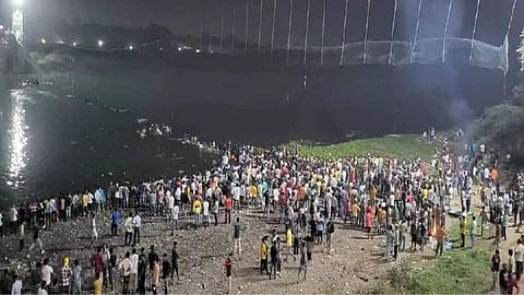 राजकोट रेंजचे पोलीस महानिरीक्षक अशोक यादव यांनी सांगितले की, मोरबीमध्ये एक दुर्दैवी घटना घडली, आम्ही याबाबत शोक व्यक्त करतो. काल संध्याकाळी 6.30 वाजता हा पूल कोसळला. आम्ही सर्व आरोपींवर कठोर कारवाई करण्यासाठी आयपीसीच्या कलम 304, 308 अंतर्गत गुन्हा नोंदवला आहे. आरोपींना कठोर शिक्षा होईल, असंही त्यांनी सांगितलं. (Latest News)