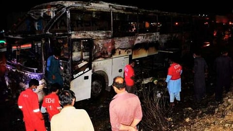 याबाबत पाकिस्तानी वृत्तसंस्थानी दिलेल्या माहितीनुसार 35 ते 40 प्रवाशांना घेऊन ही बस कराचीहून इस्लामाबादला जात होती. पंजाबमधील पिंडी भटियानजवळ ही भरधाव बसच डिझेलचे ड्रम वाहून नेणाऱ्या पिकअप व्हॅनला धडकली या अपघातानंतर बसने पेट घेतला. या आगीने बसमधील प्रवाशांचा एकच गोंधळ उडाला.