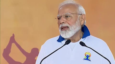 यूएन मुख्यालयात झालेल्या या कार्यक्रमात पंतप्रधान मोदी म्हणाले की, ''योग भारतातून आला आहे, परंतु त्यावर कोणताही कॉपीराइट नसून तो रॉयल्टी इत्यादीपासून मुक्त आहे. कोणत्याही वयोगटातील लोक हे करू शकतात.'' "संपूर्ण जग योगासाठी पुन्हा एकत्र आले हे पाहून आनंद झाला, असंही ते म्हणाले आहेत. (Latest Marathi News)