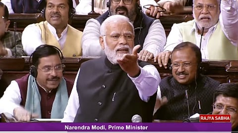 PM Narendra Modi Rajya Sabha Speech : पंतप्रधान नरेंद्र मोदी यांनी आज संसदेत राष्ट्रपतींच्या अभिभाषणावर आभार व्यक्त करण्यासाठी भाषण सुरू केलं. मोदी भाषणासाठी उभे राहताच विरोधकांनी राज्यसभेत प्रचंड गदारोळ घातला. मोदींना पाहताच, विरोधी बाकावर बसलेल्या खासदारांनी मोदी-अदानी भाई भाई, अशा घोषणा दिल्या. या घोषणा देणाऱ्या खासदारांना पंतप्रधान मोदींनी चांगलंच सुनावलं आहे. (Latest Marathi News)