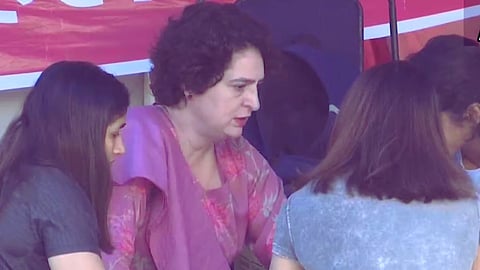 Delhi Priyanka Gandhi News: दिल्लीच्या जंतरमंतरवर कुस्तीपटूंचा संप सातव्या दिवशीही सुरूच आहे. आज या आंदोलकांशी काँग्रेस नेत्या प्रियंका गांधी यांनी भेट घेतली. यावेळी प्रियंका गांधी यांनी विनेश, साक्षी मलिक आणि बजरंग पुनिया यांच्याशी बातचीत केली. प्रियंका गांधी जवळ जवळ अर्धा तास या आंदोलकांसोबत आंदोलनाच्या ठिकाणी बसून होत्या. (Latest Marathi News)