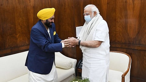 पंजाबचे मुख्यमंत्री (Punjab Chief Minister) भगवंत मान (Bhagwant Mann) यांनी गुरुवारी पंतप्रधान नरेंद्र मोदी यांची भेट घेतली. पंजाबच्या मुख्यमंत्रिपदाची सूत्रे हाती घेतल्यानंतर मान यांची पंतप्रधानांसोबतची ही पहिलीच भेट आहे. भगवंत मान दिल्लीचे मुख्यमंत्री अरविंद केजरीवाल यांचीही भेट घेणार आहेत. मुख्यमंत्र्यांनी ट्विट केले होते की त्यांनी पंतप्रधान (Narendra Modi) आणि केंद्रीय गृहमंत्र्यांना भेटण्यासाठी आणि पंजाबशी संबंधित समस्यांवर चर्चा करण्यासाठी वेळ मागितला आहे. आम आदमी पार्टीचे (AAP) नेते भगवंत मान यांचा 16 मार्च रोजी हजारो लोकांच्या उपस्थितीत पंजाबचे मुख्यमंत्री म्हणून शपथविधी पार पडला. पंतप्रधानांनीही मान यांचे मुख्यमंत्री झाल्याबद्दल अभिनंदन केले होते. पंजाब विधानसभा निवडणुकीत AAP ने 117 पैकी 92 जागा जिंकल्या आहेत.