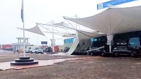गुजरातमध्ये राजकोट विमानतळाचं छत कोसळल्याची घटना घडली आहे. गुजरातमध्ये मुसळधार पावसामुळे राजकोट विमानतळाच्या टर्मिनल बाहेरील पॅसेंजर पिकअप आणि ड्रॉप भागात छत कोसळल्याची घटना घडली आहे. या छताखाली कोणीही नसल्याने मोठा अनर्थ टळला आहे. राजकोटमधील या छताखाली कोणीही नव्हतं, अन्यथा दिल्लीसारखी घटना घडली असती, असं बोललं जात आहे.