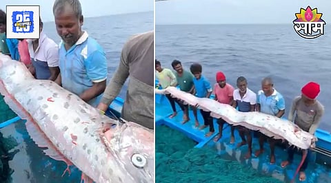 काही दिवसांपूर्वी तामिळनाडूच्या समुद्रकिनाऱ्यावर मासेमारी करणाऱ्यांनी हा अनोखा मासा पकडला चांदेरी रंगाचे शरीर, लहरी आकार आणि डोक्याजवळ लाल कंगव्यासारखे पंख असा आगळावेगळा मासा पाहून सर्वांना आश्चर्य वाटले होते. हा मासा समुद्रात २०० ते १००० मीटर खोलीवर राहतो, त्याची लांबी ३० फूटांपर्यंत जाऊ शकते. त्याचे समुद्राच्या पृष्ठभागावर येणे फक्त दुर्मिळच नाही, तर धक्कादायक देखील मानले जाते. या घटनेचा व्हिडीओ सोशल मीडियावर व्हायरल होत आहे. व्हिडीओच्या कॅप्शनमध्ये तामिळनाडूमध्ये 'डूम्सडे फिश' आढळला असे म्हटले आहे.