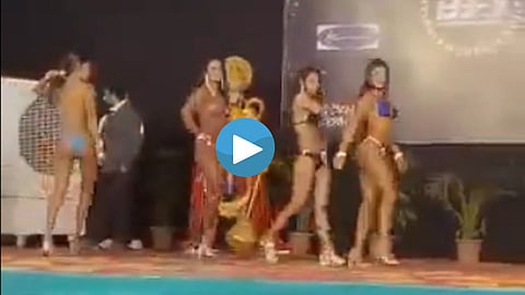 Ratlam Body Building Competition News: रतलाम शहरात रविवारी झालेल्या 13व्या ज्युनियर बॉडी बिल्डिंग स्पर्धेत महिला स्पर्धकांच्या स्टेजवरील परफॉर्मन्सवरून वाद निर्माण झाला आहे. या वादाचं कारण स्पर्धेवेळी मंचावर असलेली हनुमानाची मूर्ती आहे. स्टेजवरील हनुमानाच्या मूर्तीसमोर महिला स्पर्धकांनी टू पीसमध्ये बॉडीबिल्डिंग करणे याला काँग्रेसने अश्लीलता म्हटले आहे.