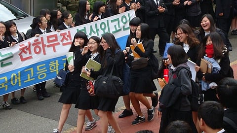 जगातील सर्वात कठीण परीक्षांपैकी एक असलेली दक्षिण कोरियाची सुनेयुंग परीक्षा पुन्हा एकदा चर्चेत आली आहे. नोव्हेंबरच्या दुसऱ्या पंधरवड्यात होणाऱ्या या परीक्षेला दरवर्षी ५ लाख विद्यार्थी बसतात. परीक्षा 9 तास चालते. ही परीक्षा उत्तीर्ण होणे म्हणेज पाचही बोटं तुपास असं समजले जाते.