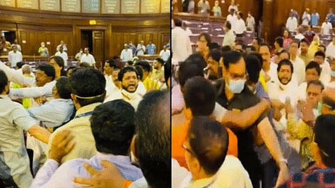 विरोधी पक्षनेत्याच्या भाषणादरम्यान टीएमसीने गोंधळ सुरू केला. दुसरीकडे भाजप आमदारांनीही घोषणाबाजी सुरू केली. यावेळी दोन्ही बाजूंनी जोरदार वादावादी व घोषणाबाजी झाली. आमदार जागेवरून उठून वेलमध्ये आले. ते एकमेकांना धक्काबुक्की करू लागले. उपस्थित सुरक्षा कर्मचाऱ्यांनी त्यांना शांत करण्याचा प्रयत्न केला असता त्यांनाही मारहाण करण्यात आली.