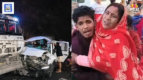 मुलाच्या मुंडन समारंभासाठी सर्व नातेवाईक मिनी बसने जात असताना अपघात झाला. मटिहानी गावातील २२ जण एका मिनी बसमधून प्रवास करत होते. मंदिरामध्ये पोहचण्यापूर्वीच वाटेमध्ये भरधाव ट्रकने मिनी बसला समोरून जोरदार धडक दिली. मध्यरात्री आडीचच्या सुमारास हा अपघात झाला. या अपघातामध्ये मिनी बसच्या पुढील भागाचा चक्काचूर झाला आहे.