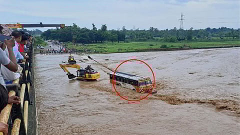 बसमध्ये असलेल्या प्रवाशांना जेसीबीच्या सहाय्याने सुखरूप बाहेर काढण्यात आले. त्यामुळे सुदैवाने या घटनेत कोणतीही जीवितहानी झाली नाही. अंगावर काटा आणणाऱ्या या थरारक घटनेचा व्हिडीओ समोर आला आहे. व्हिडीओमध्ये तुम्ही पाहू शकता, पुराच्या पाण्यात बस अडकून पडली आहे.