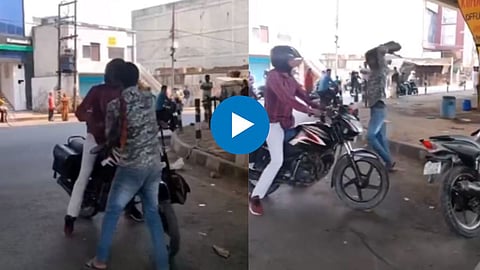 या व्हायरल व्हिडिओमध्ये दोन तरुण छोट्याशा कारणावरुन भर रस्त्यामध्ये वाद घालत असल्याचे दिसत आहे. या दोघांचा हा वाद बघता बघता वाढत जातो आणि उभा असलेला तरुण थेट भलामोठा दगड उचलत गाडीवर बसलेल्या तरुणाच्या डोक्यात घालत असल्याचे व्हिडिओमध्ये दिसत आहे.