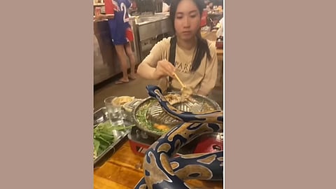Viral Video: वेगवेगळ्या प्रकारच्या प्राण्यांना पाळणे हा आता एक छंदच झाला आहे. माणसं आपल्या आवडीप्रमाणे माकड, कुत्रा, मांजर असे प्राणी पाळतात यात काही महानग असेही आहेत ज्यांना चक्क साप पाळायला सुद्धा आवडतो. बाहेर जेवायला जाताना काही व्यक्ती आपल्या पाळीव प्राण्यांना देखील बरोबर आणतात. अशात दोन तरुणी चक्क आपल्या महाकाय भल्यामोठ्या अजगराला घेऊन हॉटेलमध्ये जेवायला आल्या आहे. एकूणच हे दृश्य पाहून हॉटेल मालकाच्या काळजात धडकी भरली आहे. (Latest Snake Viral News)