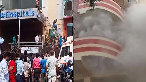 विशाखापट्ट्णममधील एका रुग्णालयाच्या ऑपरेशन थिएटरमध्ये गुरुवारी भीषण आग लागल्यामुळे एकच खळबळ उडाली. तिसऱ्या मजल्यापर्यंत आग पसरली होती. रुग्ण आणि कर्मचाऱ्यांना शिड्या लावून हॉस्पिटलमधून बाहेर काढण्यात आलं आहे. दरम्यान कोणतीही जीवितहानी झाली नसल्याची माहिती आहे. आगीची माहिती मिळताच अग्निशमन दल आणि पोलीस घटनास्थळी दाखल झाले आणि आग आटोक्यात आणली.