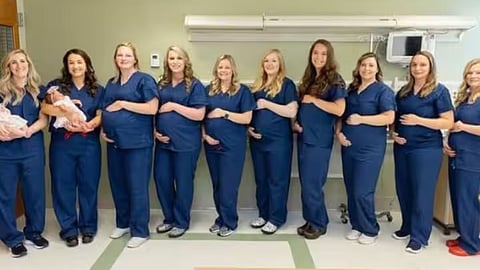 अमेरिकेच्या व्हर्जिनिया हॉस्पिटलमधील रिजनल मेडिकल सेंटर टीमच्या एकूण 12 नर्स एकत्रितपणे गर्भवती झाल्या आहेत. या 12 महिलांपैकी 11 नोंदणीकृत नर्स असून एक युनिट सेक्रेटरी आहे.