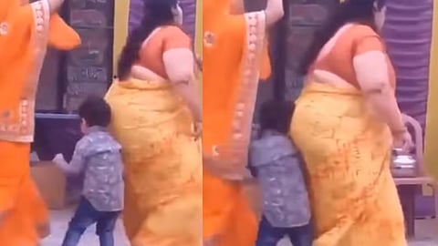 तेव्हा या महिलेचं सुद्धा नाचनाता संतुलन बिघडतं अन् ही महिला थेट त्या मुलाच्या अंगावर कोसळते. हा धक्कादायक प्रकार एकाने आपल्या मोबाईल कॅमेऱ्यात कैद केलाय. सरकताच महिलेचा चिमुकल्याला धक्का लागतो आणि ती थेट खाली कोसळते. हा व्हिडीओ पाहून सध्या नेटकरी हसावं की घाबरावं अशा बुचकळ्यात पडले आहेत.
