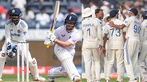 भारत आणि इंग्लंड यांच्यात हैदराबादच्या राजीव गांधी स्टेडियमवर खेळवला जाणारा पहिला कसोटी सामना अत्यंत रंगदार स्थितीत आला आहे. पहिल्या डावात १९० धावांनी पिछाडीवर असलेल्या इंग्लंडने दुसऱ्या डावात ४२० धावांचा डोंगर उभारला. ऑली पोपने १९६ धावांची खेळी करत सामन्याला कलाटणी दिली. ('साम टीव्ही'चं व्हॉट्सअॅप चॅनल जॉईन करण्यासाठी येथे क्लिक करा)