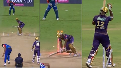 कोलकातासाठी शेवटच्या षटकात आंद्रे रसेल अत्यंत धोकादायक फलंदाजी करत होता. रसेलची आक्रमक फलंदाजी रोखण्याची आव्हान दिल्लीसमोर होतं आणि ते काम इशांत शर्माने करुन दाखवलं. दिल्लीसाठी शेवटचे षटक टाकण्यासाठी इशांत शर्मा आला. ईशांतने आंद्रे रसेलला चूक यॉर्कर टाकला. वेगाने आलेला चेंडू रसेलच्या बॅट आणि पायातून थेट स्टंप्सना जाऊन लागला. त्यावेळी बेल्स हवेत उडाल्या आणि रसेल देखील तोल गेल्याने खाली पडला. ('साम टीव्ही'चं व्हॉट्सअॅप चॅनल जॉईन करण्यासाठी येथे क्लिक करा)