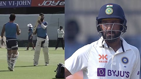 IND VS AUS Cheteshwar pujara: बॉर्डर गावसकर ट्रॉफीत नवा ट्विस्ट पाहायला मिळाला आहे. ४ कसोटी सामन्यांच्या मालिकेतील सुरुवातीचे दोन सामने गमावल्यानंतर ऑस्ट्रेलिया संघाने तिसऱ्या सामन्यात जोरदार पुनरागमन केले आहे.