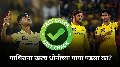 आयपीएल २०२४ स्पर्धेत २६ मार्च रोजी झालेल्या सामन्यात चेन्नई सुपर किंग्ज आणि गुजरात टायटन्स हे दोन्ही संघ आमने सामने आले होते. या सामन्यात चेन्नई सुपर किंग्ज संघातील खेळाडूंकडून शानदार खेळ पाहायला मिळाला. या खेळाच्या बळावर चेन्नई सुपर किंग्ज संघाने ६३ धावांनी शानदार विजय मिळवला. या सामन्यानंतर श्रीलंकेचा वेगवान गोलंदाज मथीशा पथिरानाचा एक व्हिडिओ जोरदार व्हायरल झाला होता. ज्यात तो धोनीच्या पाया पडताना दिसून आला होता. खरंच तो धोनीच्या पाया पडला का? काय आहे सत्य? जाणून घ्या.