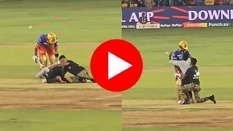 हा सामना सुरु असताना एक क्रिकेट फॅनने सुरक्षारक्षकांना चकवा देत थेट खेळपट्टीच्या दिशेने धाव घेतली. खेळपट्टीवर गेल्यानंतर तो विराटचे पाय पडू लागला. त्यानंतर त्याने विराटला मिठी मारली. मात्र काही क्षणातच सुरक्षारक्षक मैदानात आले आणि त्याला मैदानाबाहेर घेऊन गेले. हा व्हिडिओ सोशल मीडियावर व्हायरल होतोय. या घटनेनंतर पुन्हा एकदा खेळाडूंच्या सुरक्षेचा प्रश्न उपस्थित झाला आहे. फॅनने सुरक्षारक्षकांना चकवा देत मैदानात येण्याची ही पहिलीच वेळ नाही. यापूर्वी देखील अनेकदा अशा घटना घडल्या आहेत. (Cricket news in marathi)