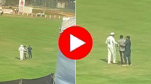 या सामन्यात मुंबईचा कर्णधार रोहित शर्मा देखील रणजी ट्रॉफी खेळण्यासाठी मैदानात उतरला आहे. दरम्यान रोहित शर्मा रणजी ट्रॉफी खेळतोय हे पाहून हजारो फॅन्स रोहितला खेळताना पाहण्यासाठी मैदानात आले होते. दरम्यान मुंबईचं क्षेत्ररक्षण सुरु असताना एका फॅनने सुरक्षारक्षकांना चकवा देत मैदानात प्रवेश केला