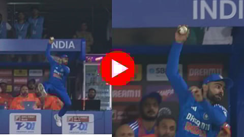 हा चेंडू सीमारेषेच्या बाहेर ६ धावांसाठी जात होता. मात्र त्याचवेळी विराट कोहलीने उडी मारली आणि चेंडू अडवला. त्याचा तोल गेला त्यामुळे त्याने चेंडू मैदानाच्या आत फेकला. यासह त्याने आपल्या संघासाठी ५ धावा वाचवल्या. त्याचं हे क्षेत्ररक्षण पाहून कर्णधार रोहितसह कोच राहुल द्रविड आणि सपोर्ट स्टाफमधील सदस्यांनीही त्याचं कौतुक केलं. (Latest sports updates)