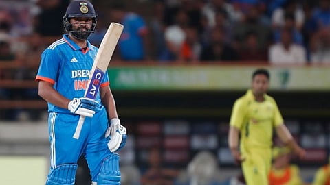 ऑस्ट्रेलियाविरुद्धच्या ३ सामन्यांच्या वनडे मालिकेतील शेवटच्या सामन्यात टीम इंडियाचा कर्णधार आणि सलामीवीर फलंदाज रोहित शर्मानं आपल्या स्फोटक फलंदाजीनं खळबळ उडवून दिली आहे. रोहितने आक्रमक फलंदाजी करत ऑस्ट्रेलियन जलदगती गोलंदाजांची हवा काढून घेतली. विश्वकप आधी रोहितचा हा फॉर्म पाहून अनेक गोलंदाजांना धडकी भरेल यात शंका नाही. (Latest Sport News )