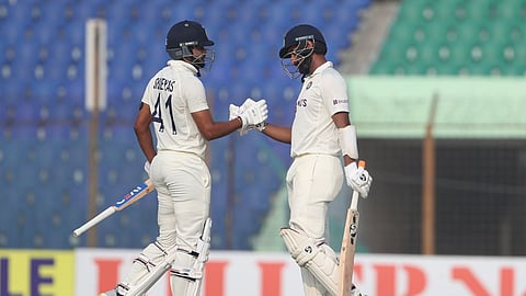 त्यानंतर मैदानात आलेल्या अय्यरनं पुजाराला चांगली साथ दिली. दोघांनी बांगलादेशी गोलंदाजांच्या खोचक माऱ्याला चांगलं प्रत्युत्तर दिलं. दोघांनी सुरेख फटकेबाजी केली. या दोघांनी ११२ धावांवरून धावसंख्या २६१ पर्यंत पोहोचवली. पुजारा २०१९ पासूनचा कसोटी शतकांचा दुष्काळ संपवेल असं वाटत होतं, पण तो बाद झाला. त्यामुळं कसोटी शतकाची प्रतीक्षा लांबली. बांगलादेशच्या ताइजुलने तीन विकेट घेतल्या. मिराजने दोन विकेट घेतल्या, तर अहमदने एक विकेट घेतला.