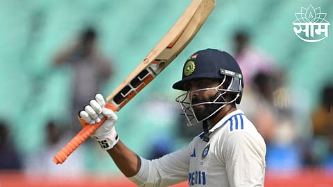 रोहित शर्मा बाद झाल्यानंतर रविंद्र जडेजाने सरफराज खानसोबत मिळून स्कोअरबोर्ड हलता ठेवला. त्याने या डावात १९८ चेंडूंचा सामना करत आपलं शतक पूर्ण केलं. या शतकी खेळीदरम्यान त्याने ७ चौकार आणि २ षटकार मारले. हे त्याच्या कसोटी कारकिर्दीतील चौथे शतक ठरले आहे. त्याने शतक तर झळकावलं, मात्र शतक झळकावण्यापूर्वी सरफराज खान धावबाद झाला होता. यात जडेजाची चूक होती. त्यामुळे जडेजाने शतक झळकावल्यानंतर सेलिब्रेशन केलं नाही. (Cricket news in marathi)