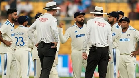 पहिल्या डावातील ३२ वे षटक सुरू होण्यापूर्वी अंपायर आणि रोहित शर्मा यांच्यात बराच वेळ चर्चा झाली. सरफराज खान फलंदाजाच्या अगदी जवळ उभा राहून क्षेत्ररक्षण करतो. क्षेत्ररक्षण करत असताना तो फलंदाजाला काहीतरी बोलत होता.