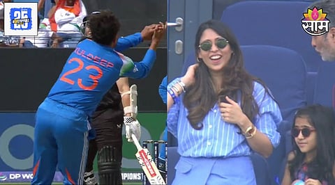 कुलदीप यादवने दहाव्या ओव्हरमध्ये रचिन रविंद्रला बाद केले. त्यानंतर बाराव्या ओव्हरच्या दुसऱ्या बॉलमध्ये केन विलियम्सनची कुलदीपने कॅच घेतली. केन बाद झाल्यानंतर स्टेडियममधील भारतीय चाहते आनंदाने नाचू लागले. या जल्लोषात रोहित शर्माची बायको रितिका सजदेह आणि मुलगी समायरा देखील होते. त्यांचे फोटो आणि व्हिडीओ सोशल मीडियावर व्हायरल होत आहेत.